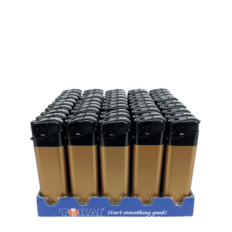 Elektrische wegwerpaansteker met kinderbeveilging in koper.